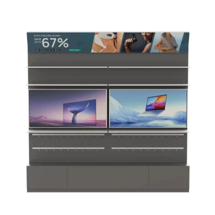Metal Wall Combination Cabinet for 3C Retail – Electronics Display Shelving Unit with Steel Frame