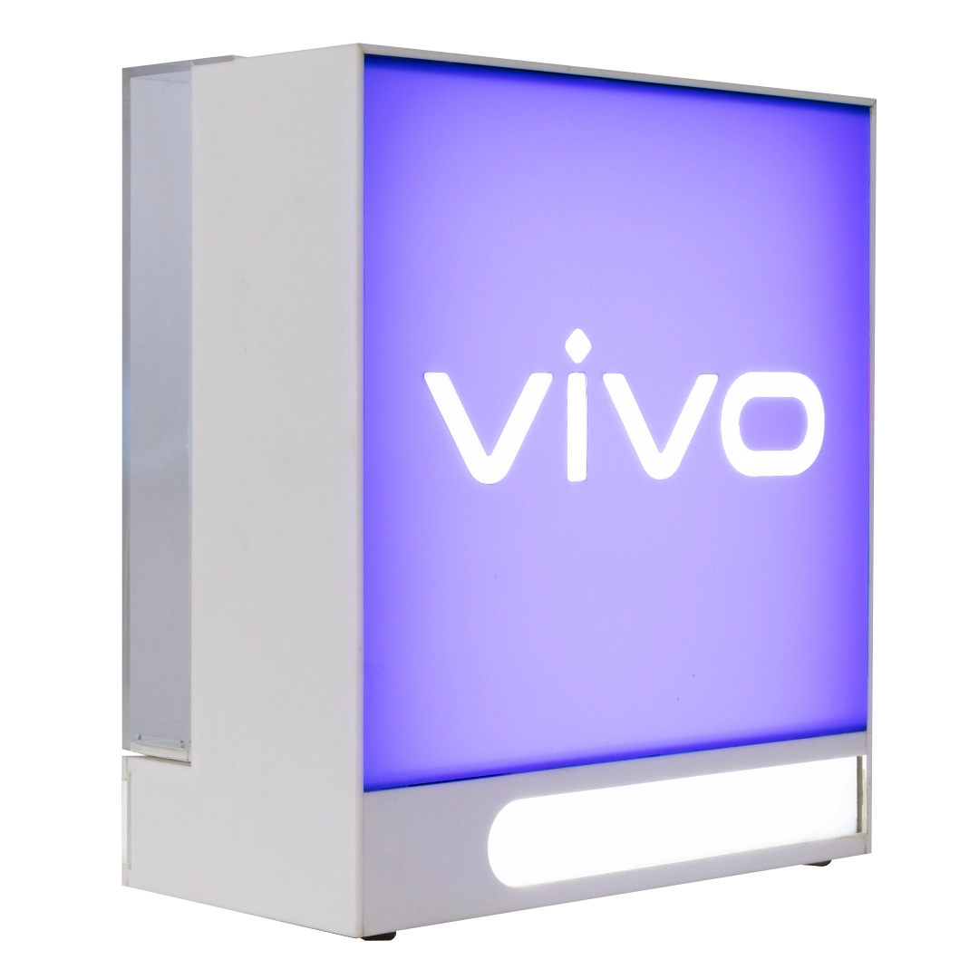 Housed within a premium transparent acrylic enclosure and supported by a solid base, the display is designed for countertop, experience desk, or display cabinet placement. Its clean structure, smooth edges, and controlled lighting make it ideal for official brand stores, smartphone retail environments, exhibitions, and promotional activations where innovation and visual impact are essential.