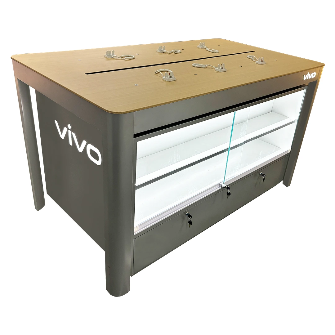 Concealed cable management ensures a tidy presentation, while the internal structure is built to withstand high traffic commercial environments. Designed to integrate seamlessly into modern Vivo store interiors, the Vivo Experience Desk balances functionality, durability, and premium brand presence. Making it ideal for flagship stores, shopping malls, exhibitions, and promotional zones.
