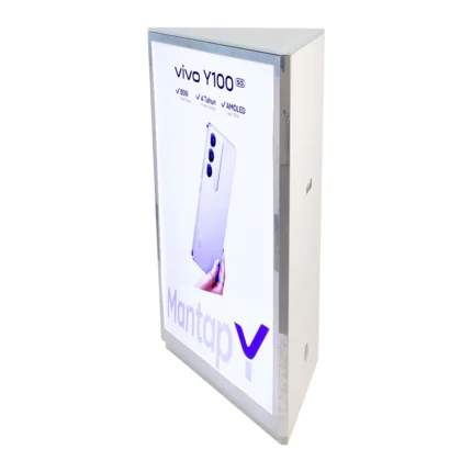 Illuminated Side Panels: Lightbox style pillar panels showcasing product visuals for enhanced attention and brand reinforcement.